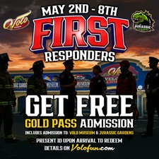 Your Gold Pass includes: Admission to both the Volo Museum and Jurassic Gardens — a full day of fun and adventure for those who give so much to keep us safe.
