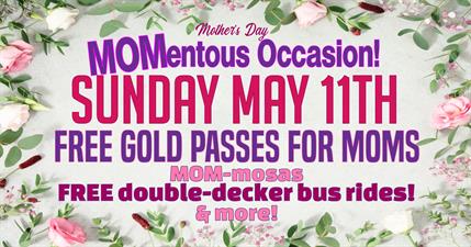 Treat mom to a gift that they always want more of, QUALITY TIME TOGETHER. This Mother's Day, May 11th, Moms get in absolutely FREE!