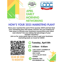 Events Calendar Category... Arts & CultureChamber Of CommerceClubs/OrganizationsCommunityContinuing EducationFestivals & CelebrationsGovernmentHispanic ChamberHolidayRecreation & SportsSchools Date... Today This Week This Month This Month & Next This Year Search Results Found: 1 Button group with nested dropdown Early Morning Business Networking @ LCCC April 2025 Business Networking Tuesday Apr 8, 2025